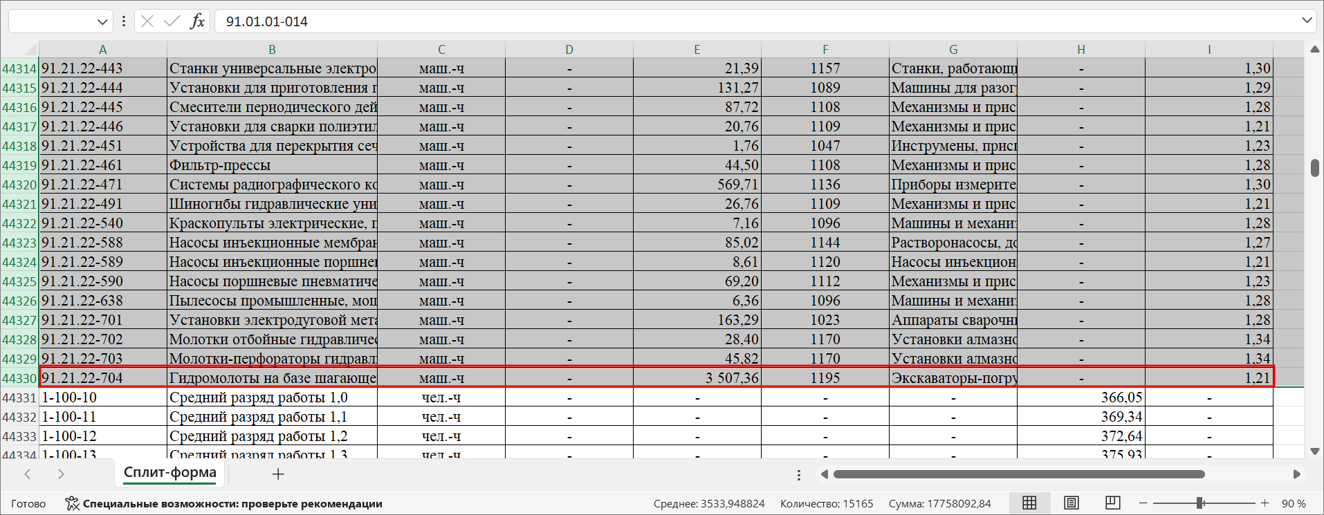 Сплит-форма - это файл, который содержит в себе сметные цены строительных ресурсов, индексы к группам однородных строительных ресурсов, сметные цены услуг на перевозку и погрузочно-разгрузочные работы, а также сметные цены на затрату труда работников в строительстве.